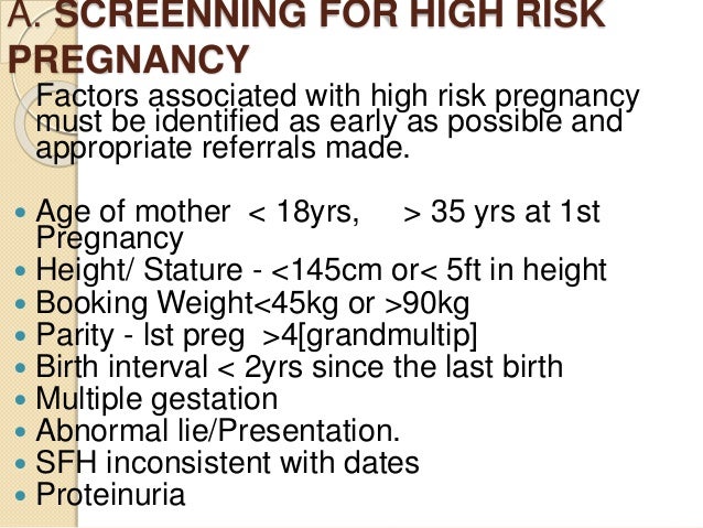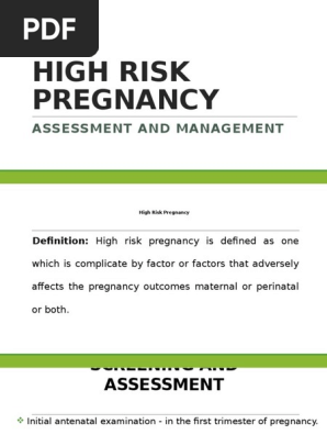 A high risk pregnancy is one in which some condition puts the mother the developing fetus or both at higher than normal risk for complications during or after the pregnancy and birth. Screening and assessment initial antenatal examination in the first trimester of pregnancy. There is no formal or universally accepted definition of a high risk pregnancy. Lockwood 2 maternal nutrition 6 edward r.