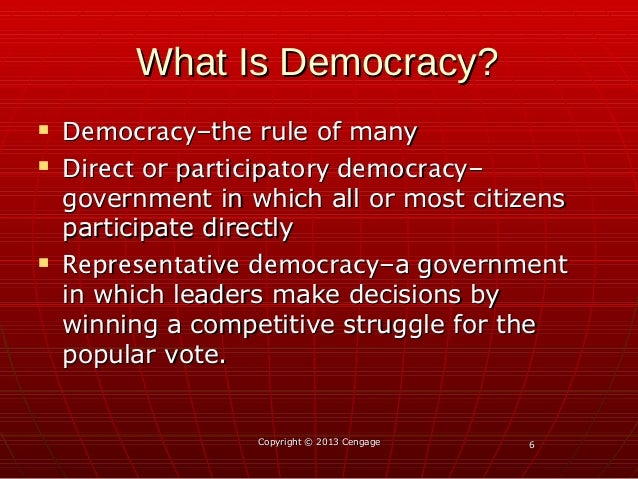 Participatory democracy which emphasizes broad participation in politics and civil society pluralist democracy which recognizes group based activism by nongovernmental interests striving for impact on political decision making. Learn vocabulary terms and more with flashcards games and other study tools. Participatory democracy definition individual participation by citizens in political decisions and policies that affect their lives especially directly rather than through elected representatives. Start studying ap gov chapter 1.